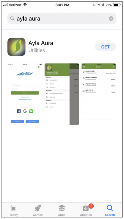 - Smart device (iOS or Android phone or tablet) with the following installed: